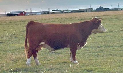 SLDK Miss Nike S11 ET Calved: April 2, 2006 Sire: CH SLDK Chaos ET Dam: SHF Lady 512 G10 ET AHA # P427456916 Nike is the foundation of our program at Carver Herefords. She is a Chaos daughter that was a many times champion in her show career and has also produced multiple banner hangers. Sons or grandsons of Nike have been in the breed drive of every Texas major! She is also the dam of the our new, popular herd sire, Midnight Yell. |